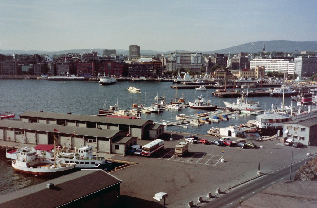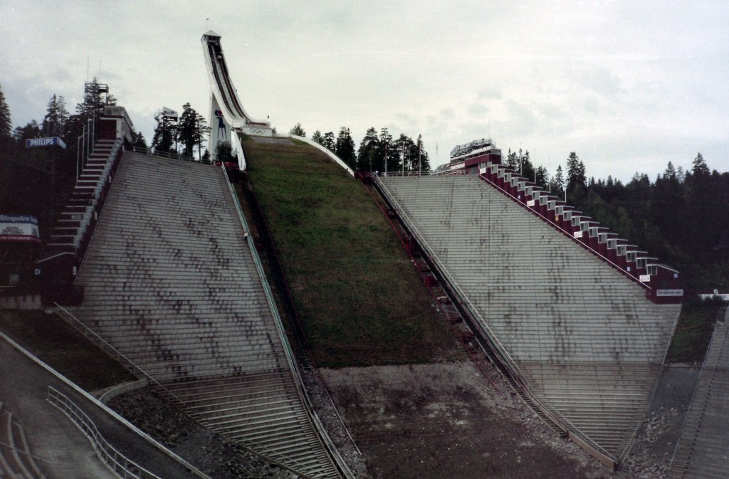 Soon I was off again, this time west to Oslo, Norway. I remember stepping off the train, still buzzing from Stockholm, crossing the street and the long road leading up to the Royal Palace opening up in front of me. Onward to my right was the University, to my left the Parliament, onwards to the National theatre, and I remember the statue to Ibsen, not that even now, have I ever read any Ibsen! I also remember a fountain that had hundreds of nozzle’s spraying out so it looked like a huge chrysanthemum! I walked on to the Royal Palace and around to the right and behind is a sculpture garden. I walked out to the Akershus Fortress area and took a few photo’s looking out over towards the city hall. A local started chatting to me and amongst other things started telling me all about the ski jump at Holmenkollen, even pointing it out to me way on the horizon, apparently there was a tram that would take me there! Now that sounded like an adventure, and I’d never seen a ski ramp!!