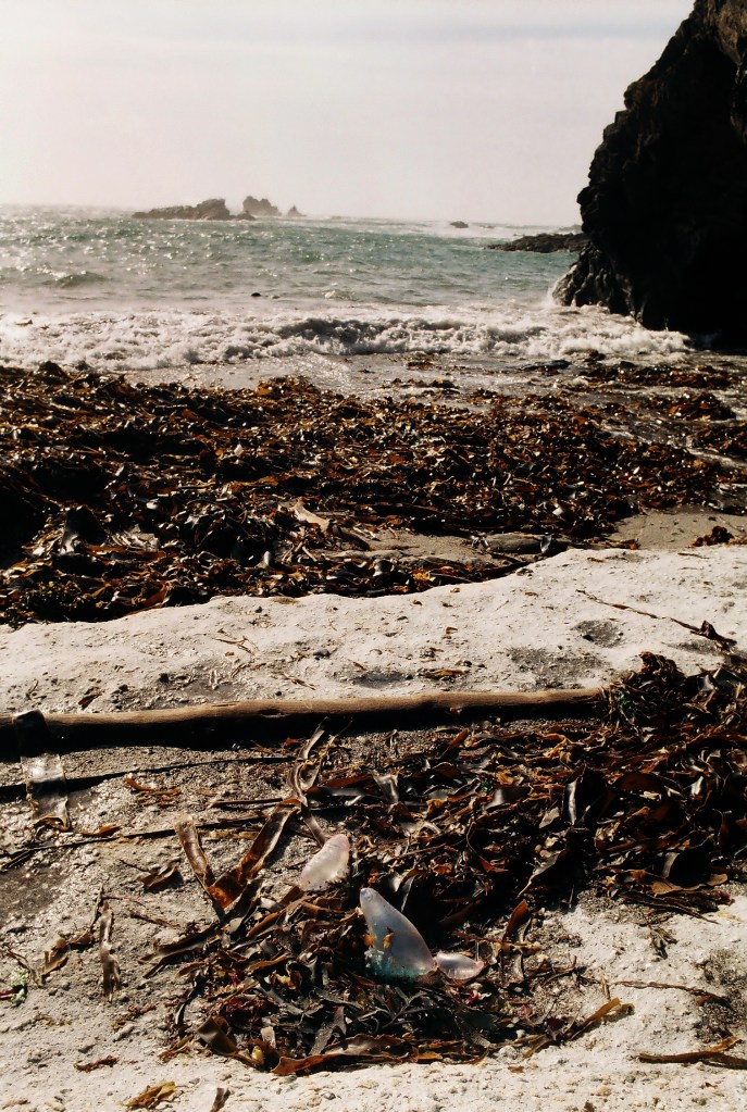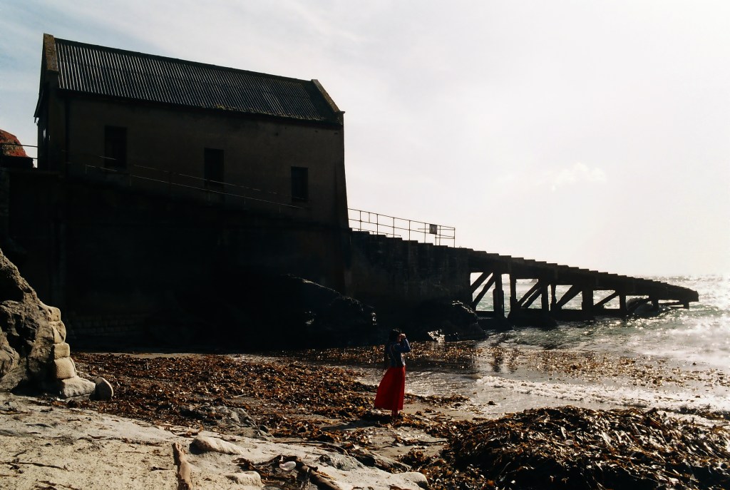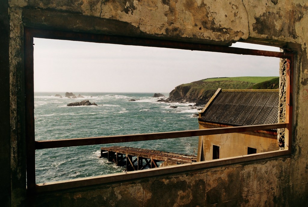 I walked down to the beach below the point – no need to scramble there is a steep path. Half way down made a photo through a window in a dis-used building that caught by eye. Eventually I reached sea level. There were sea lions and jelly fish, and a life boat station – plenty to photograph!