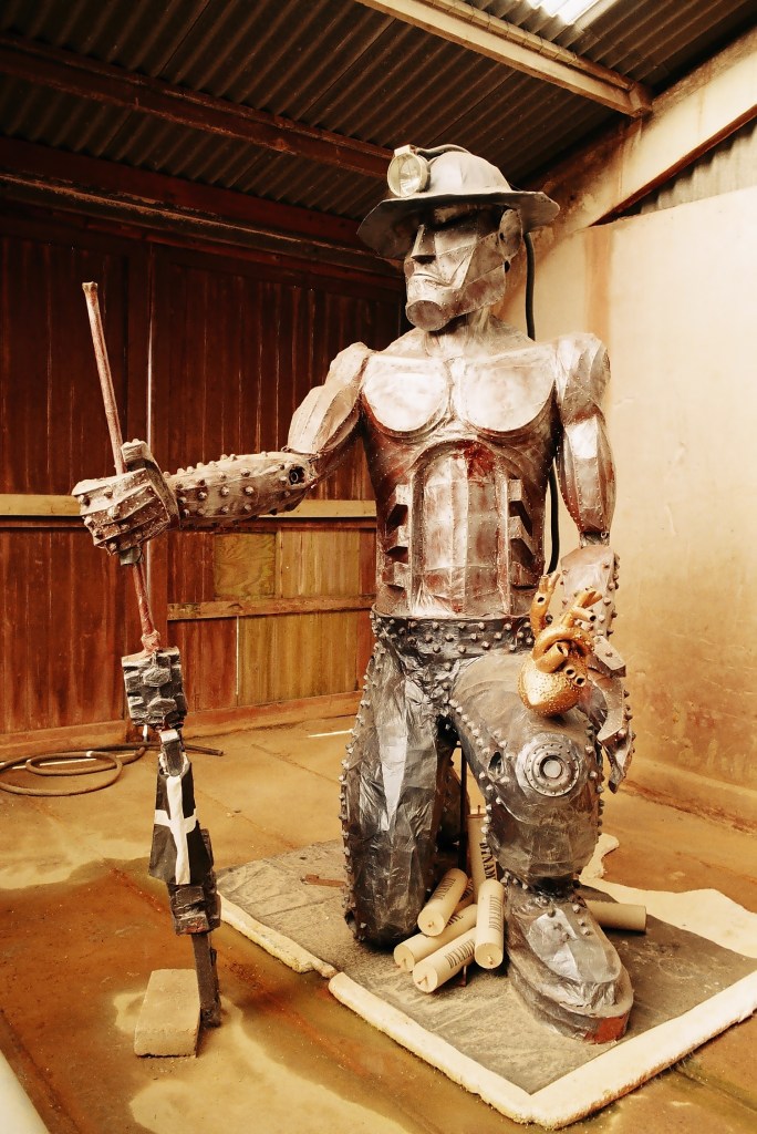 The Tin Man was originally made here at Geevor in 2000 for the local Millennium celebrations. All that remained of the original was the head, so Graham Jobbins reimagined this Tin Man which was made at Mounts Bay Academy in 2015. Note he has his heart in his hand! Outside and at the entrance stands “a memorial to the hard rock miners”, the memorial is both a garden and sculpture, both by artist Colin Caffell.
