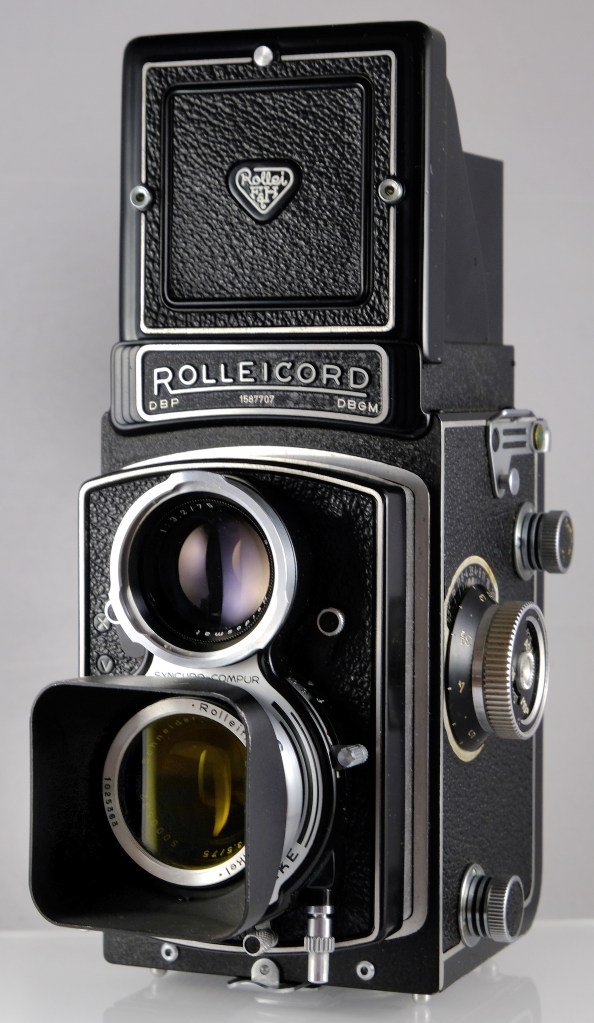 My last exposure on this visit, but not on the roll, was the bridge overlooking the weir. For this I used one of the plus features of the TLR, namely, having set focus and exposure, cocked the shutter, held the camera at arms length, on it’s side, so I could hold it out over the wall to get a better view. Not as easy as it sounds! If you have a TLR try it! Getting the camera level was a joint race of patience, and arm strength! I’m reasonably happy with the result!