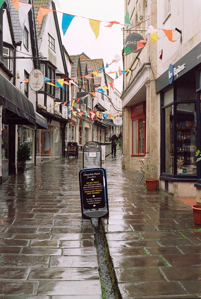 Sometime in the middle of my recent week in Somerset, the rain set in, so I made a trip to the town of Frome for some retail therapy. It seemed like the thing to do on a wet day. Of course I took the camera of choice with me – the trusty Nikon F3.