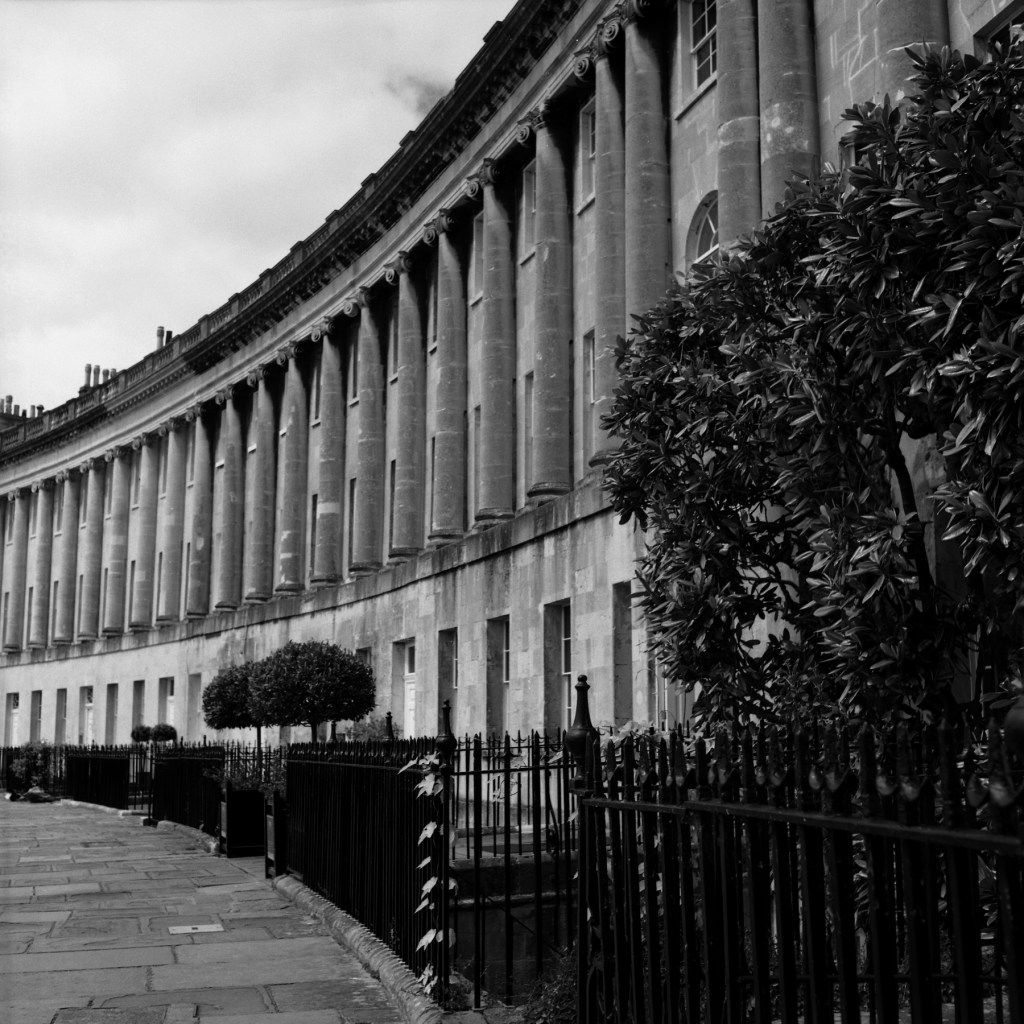 I’m not sure whether this is because I haven’t used it as much as I should, certainly I haven’t used it’s slower speeds much, usually exposing hand held at about 125th. Ultimately cameras of this type are mechanical, and nothing like them, likes to sit un-used for long. Perhaps this is just one of the perils of having “too many” cameras, or just the fact that this is one of the older ones! Either way, having a tinker in the excellent coffee shop after the event, got it going again – so I got the photo above at the start of the roll. Then 5 overexposed blobs of mush. Next day I found myself in the City of Bath. Finishing off the roll ready to load in my Gold 120!