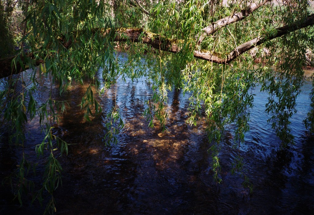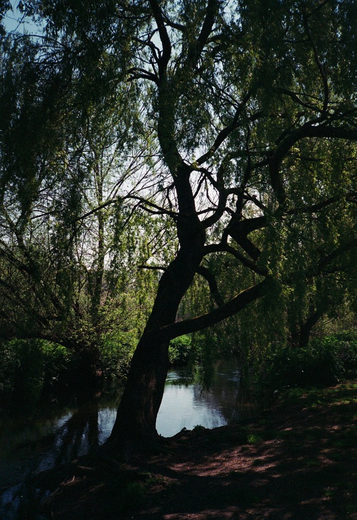 I popped a roll of Fuji C200 in to my Olympus XA2, as I was going into Wimborne. I didn’t really intend to make any photo’s, but from experience, if I hadn’t have taken a camera with me, something amazing would be happening. Having taken the precaution, nothing amazing did happen, but it was a lovely day and I had enough spare time to walk “between the two bridges” along the River Allen. The water that you see above, just about to flow under the bridge here, has just 1.25 km left before it joins the River Stour, one of Dorset’s main rivers – if not “the” main river!