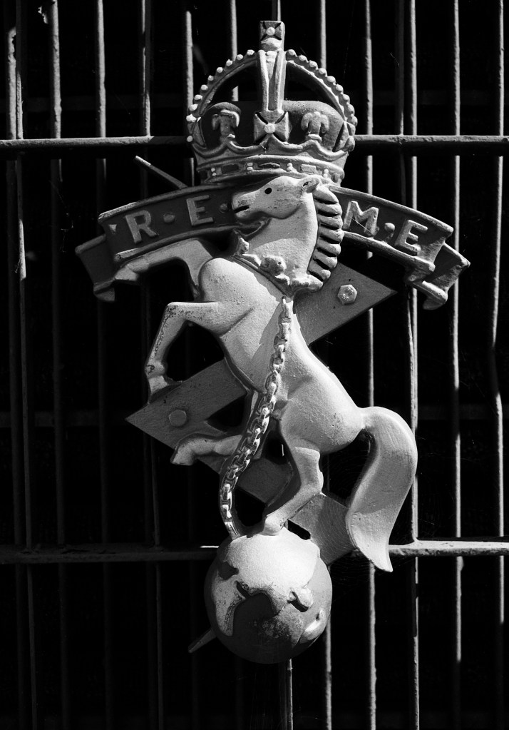 The vehicle above carries the badge of the Royal Electrical and Mechanical Engineers (below) on it’s grill.