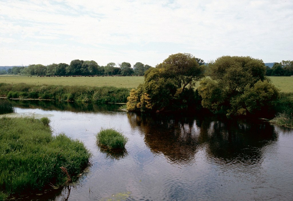Sturminster Marshall is the village at the point where the Winterborne flows into the River Stour. Tucked away just behind St Mary’s Church. Opposite the church is the Red Lion, where I had a very nice lunch and a pint a week or so later – highly recommended. The actual point of the “joining” is not accessible, I got as close as I could. About 390 meters downstream!