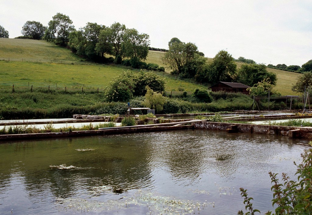 We leave Winterborne Stickland via Water Lane, heading east. The last small village is Winterborne Houghton. Even smaller, the records from 2011 show there were 82 households with a total population of 183. Back in 2001 the population was 195, so it’s shrinking! Just before the village is Houghton Springs Fish Farm, the word “springs” give us a clue that right around here lies the source of the Winterborne. The fish farm is right by the side of the lane!