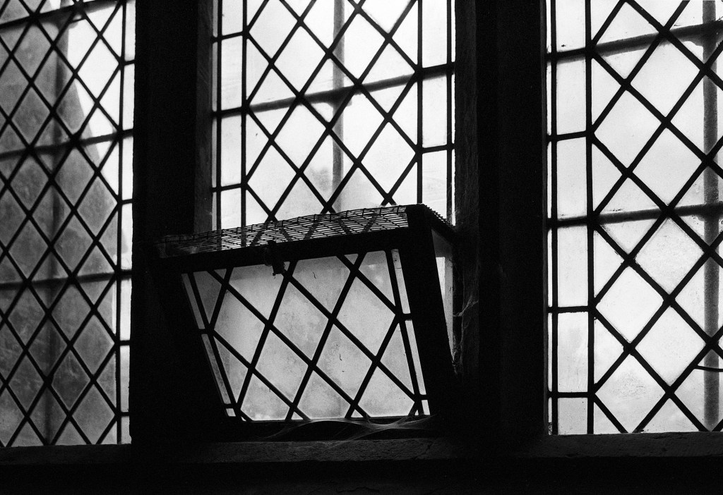 My book of old Dorset, describes the “ancient old helmet that probably belonged to the Churchill family, and a bronze plaque to King Alfred…” Meanwhile an insert in the “clear” windows state that “the clear windows in this church were restored thanks to the generosity of John and Laura Bailey in 1988”. The windows made a couple of good black and white subjects..