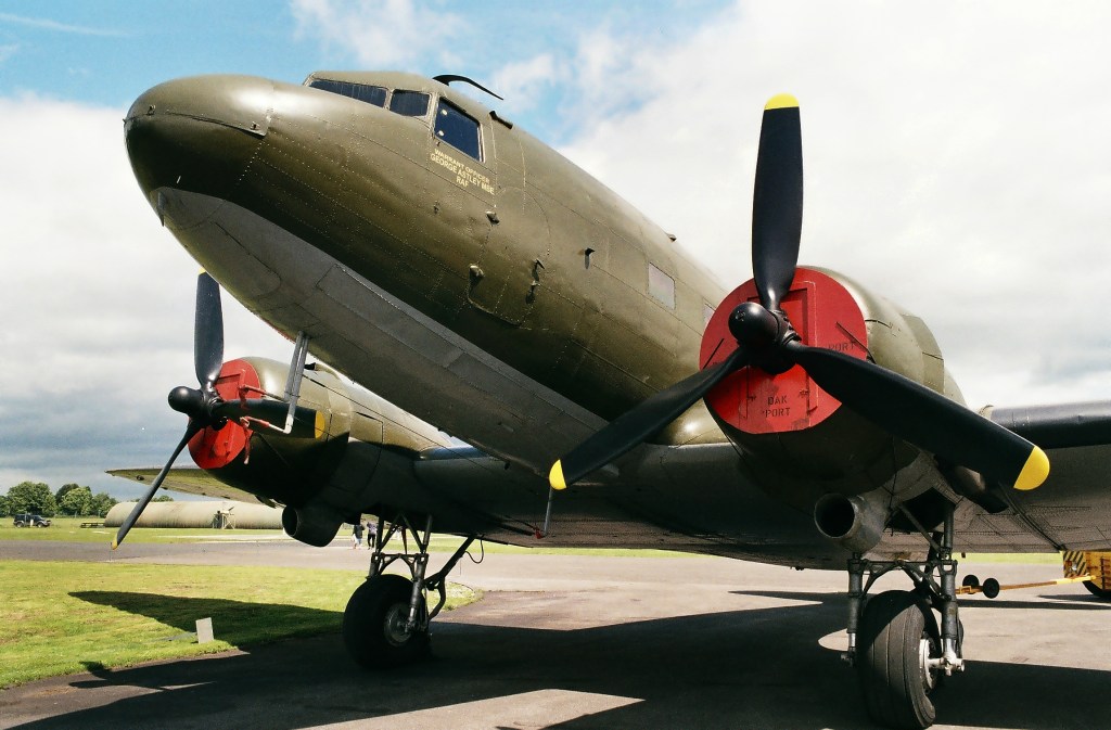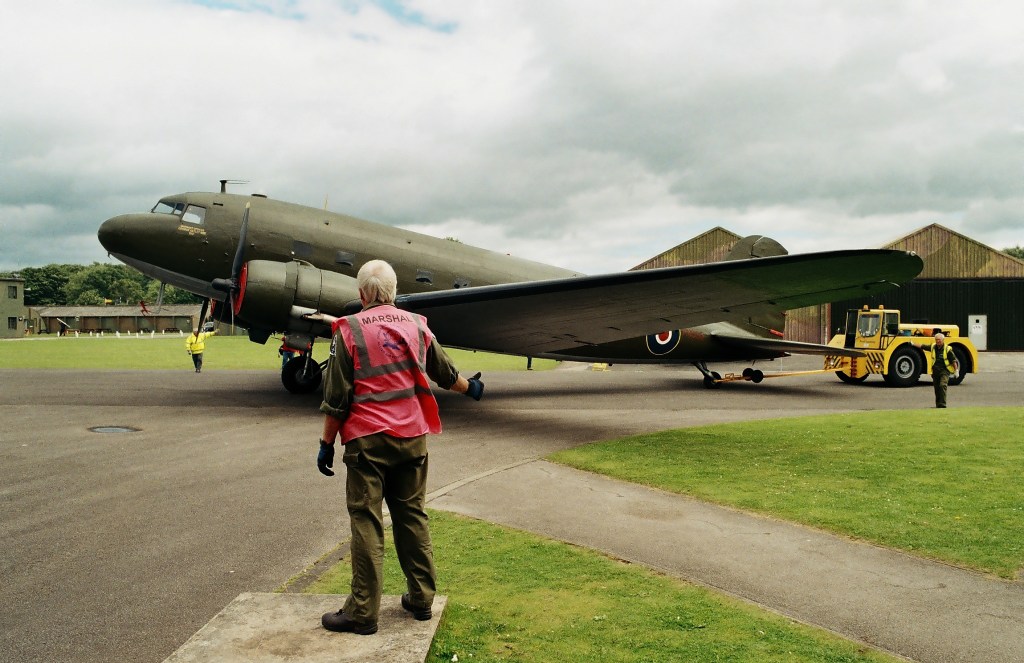 Outside the main hanger taxiing was going on. A Douglas C-47 Skytrain or Dakota, a development from the civilian Douglas DC-3 airliner, was on the move!