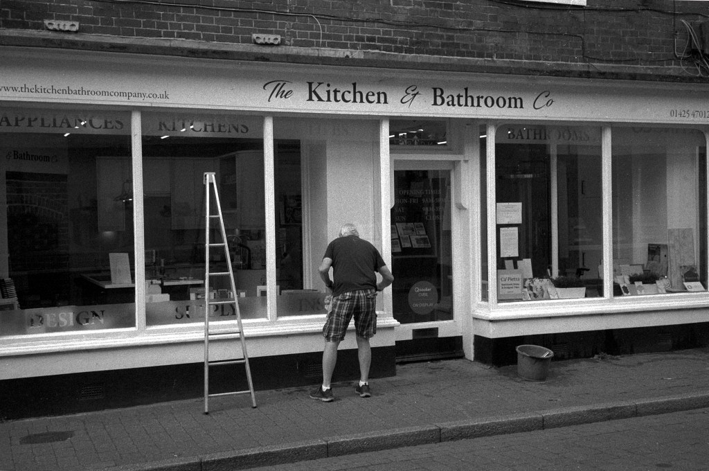 I found another bargain in a charity shop! Not the camera above, I’ll come to the new find another day, but it did contain a part used roll of Delta 400. I removed it from that camera and loaded it into the Rollei 35s above. I didn’t pay too much care in using up the remaining 12 shots on the film – I had no idea of it’s age or storage. I happened to spend a day working in Ringwood, a town on the edge of the New Forest. I took along the camera and finished up the roll before I started work!