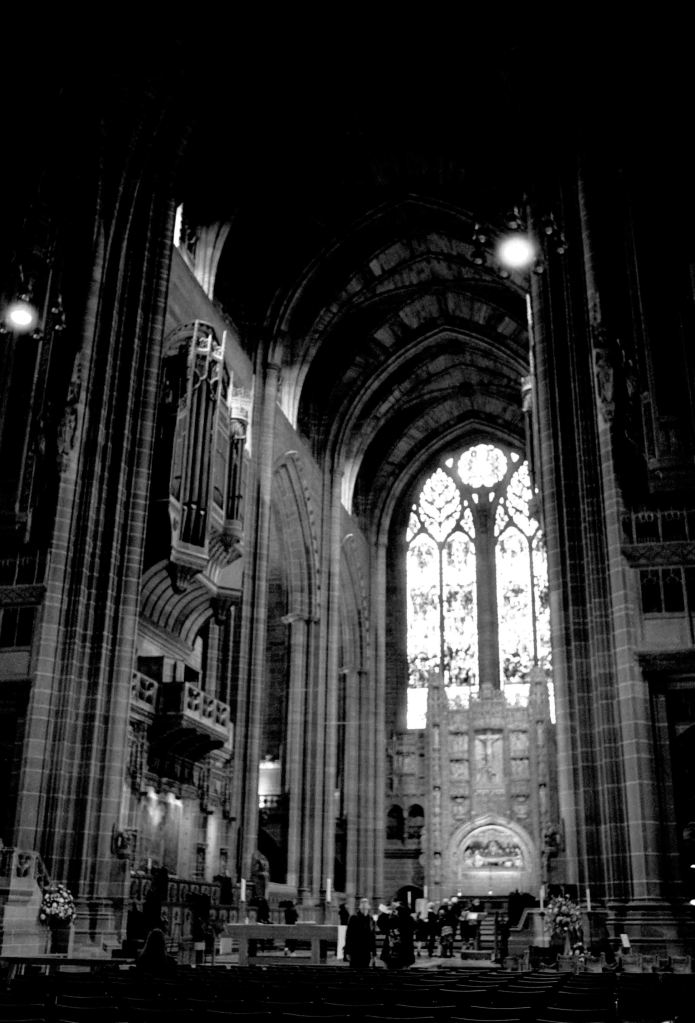 It’s built of local dark sandstone, which rather like Chester, seems to change the vibe, at least for me. It is literally darker and in Liverpool’s case it’s lit by what appear to be sodium vapour lights, which seems to provide even more contrast. I have to say I’d prefer swapping them out with some nice white LED’s! That apart, as usual there is plenty to see.