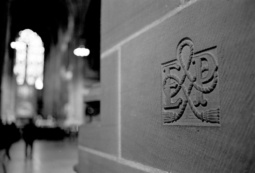 The font lid is suspended on a cantilever system and can be raised and lowered easily, apparently! It seems to stretch upward like a ballistic missile! That was almost the end of my circumnavigation of the cathedral. Just by the exit, is the personal cypher of Elizabeth and Philip, to mark their attendance at the service of dedication in October 1978. My visit was in the same week as her funeral.