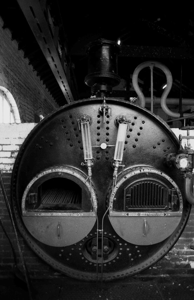 My visit to the National Waterways Museum at Ellesmere Port, was on a dull and damp day. When it wasn’t raining I was outside making photo’s of the boats and locks. When the rain swept in, I went inside. There are several buildings containing industrial heritage. There is a working forge (above), boiler rooms, stables and so on. So still plenty to see. Below is the outside of the boiler room, at the base of the chimney sit two huge boilers.