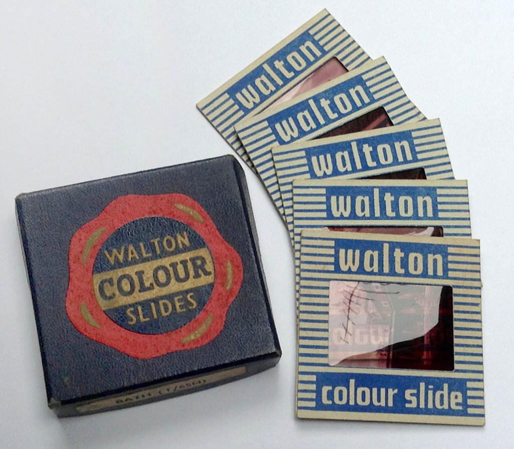 Last week I saved a little box of 5 transparencies from the bin. They have no value apart from memory. I grew up in the 70’s and can remember if one ever visited a zoo, museum, cathedral or other such tourist attraction, there was always a visitors guide available, often printed by a company called “Woodmansterne”, who are still going strong. There was also often a little, back lit box displaying transparencies. In my day they were most often sold in a plastic strip of 4. Often cleverly crafted so that you needed to buy two strips to get the shots you wanted. They were often shots that one couldn’t take. The cathedral at night, an exhibit perfectly lit without the glass in front, something or other from the air, you get the idea. They allowed the visitor to augment a slide show with those views. They often had a “Title” slide and a “The End” available too! They were most often from a company called Walton, the set above would have predated what I remember and I’d guess date from late 50’s early 60’s.