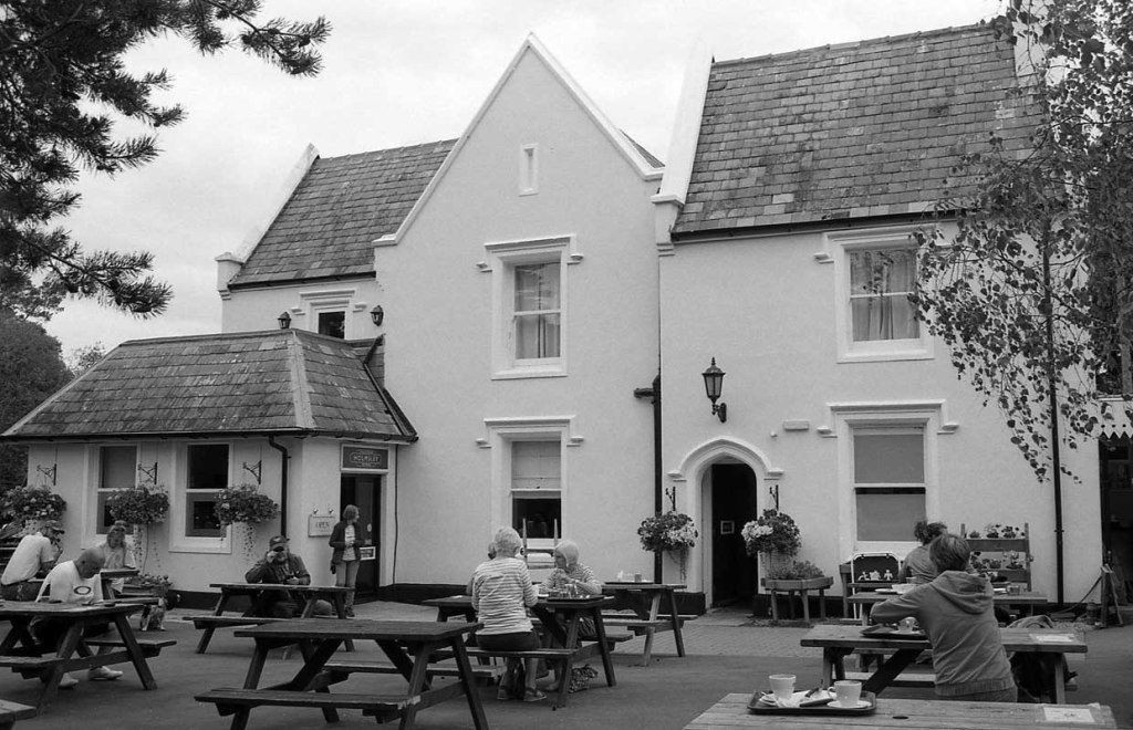 Up-date out of the way, as the road takes a sharp turn to the north, what was the track bed carries on, right ahead into the bushes! On that corner stands The Old Holmsley Station Tea Rooms. They have kept the railway theme here, and there are a few mementos scattered around the garden. They have a very interesting PDF history that you could read here, should you be into trains! I had a very nice piece of lemon meringue pie and a coffee here!
