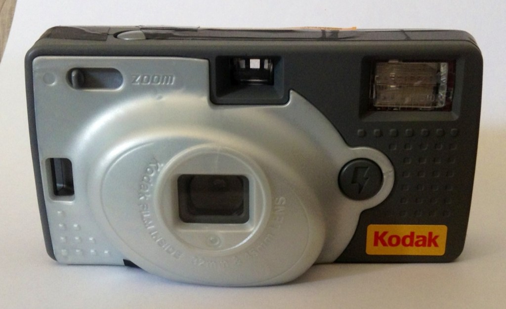 I recently came across a Kodak Single Use Camera called the “Zoom”. I don’t remember seeing one before. It had the film removed for processing, and it appears that the back is designed to fracture at a certain point to facilitate that happening. A deliberate weak spot to crack open. You can see below where I taped it up.