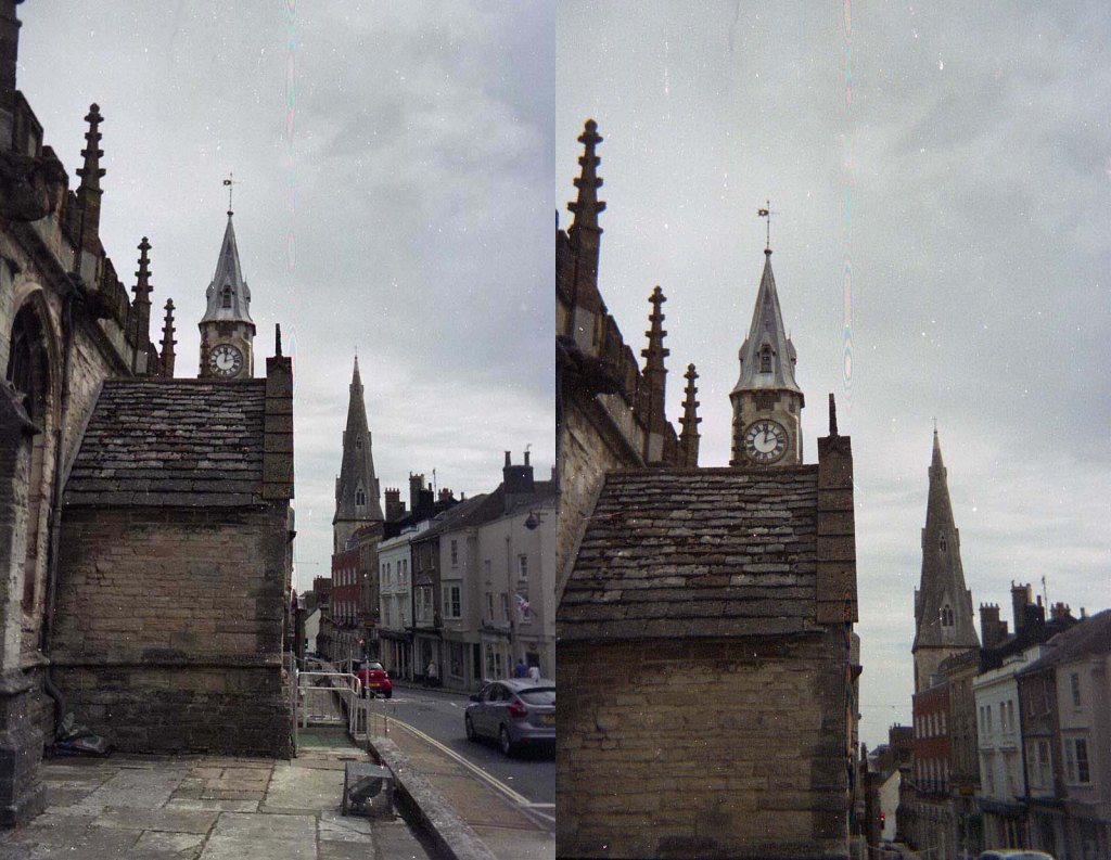 It also had a mechanism, not only to change between two focal lengths of lens, but also change viewfinder too. That’s a lot of design and mechanism to use just once and then throw I thought! The obvious thing to do was to pop another film in and re-use it. It is slightly mis-named of course as technically it doesn’t zoom at all, it offers a 32mm or 45mm lens. So Kodak “Twin” may have been a better name – however, I’m being nit picky! I loaded in a Kodak Gold 200 24 exposure film, which means, in the dark bag, rolling out the film onto a take up spool, so that as it is exposed, the camera winds it back into the cassette. I had another job to do first however, as that, by itself, wouldn’t work. You see the wind on is made by a jagged cog at the top, it’s directly under the wind on wheel. This meant I had to source an empty cassette from another previously used camera with said jaggedy edge, wind the film into that, and then, into the dark bag, pull it out again onto the feed spool, so that the camera would wind it back in again! Phew!