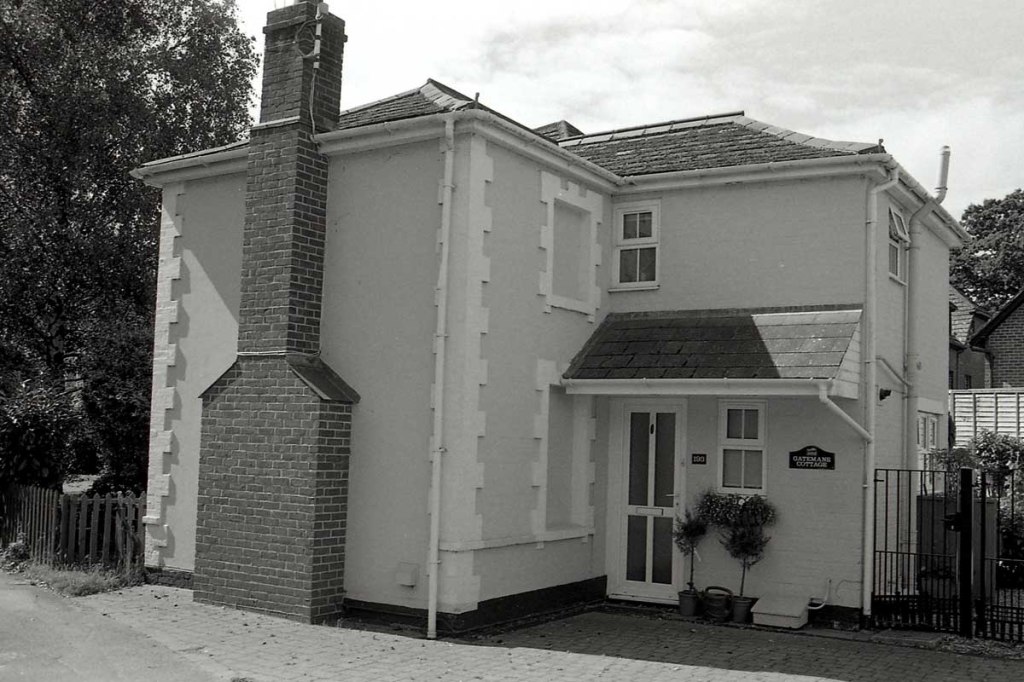 Just before the track crossed the road was a footbridge over the track, this is long gone and no trace exists. If I had have moved back maybe 10-20 feet to make this photo, (and a few years in time) I would have been under it’s arch! The station platform was immediately over the street, the other side of the gates. This is now the site of Pullman court, below. The platform would have been just where the left hand side of the photo is, and the gates, when closed, pretty much where the small picket fence now runs. Gatekeepers cottage is on the right hand side.