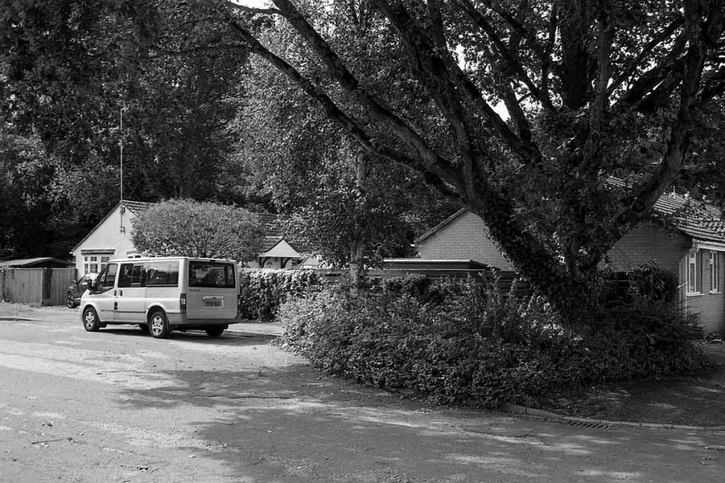 Another part to my “Takumar Trek” today! At the end of part 7 the path reached the outskirts of the newish town of West Moors. It’s one of those places that mostly grew into existence during the building boom of the 1960’s and 70’s. Before that it was a small village, and the train had a station and a goods yard. Above is a buffer at the end of one of those goods sidings (I think!). The track deposits the walker into Arnold Close, a modern collection of bungalows (below), this leads into Arnold Road, and then into Mary Lane, both once the track of the railway.