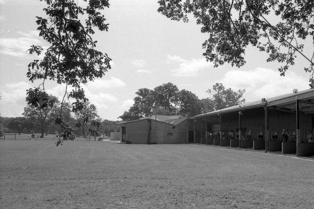 Soon back on the track bed, the path passes over the boundary of West Moors and enters into Ferndown. Soon running parallel to the Ferndown Forest Golf club. Below is a snap of the practice range made from the path. This emerges, right alongside the Forest Inn.