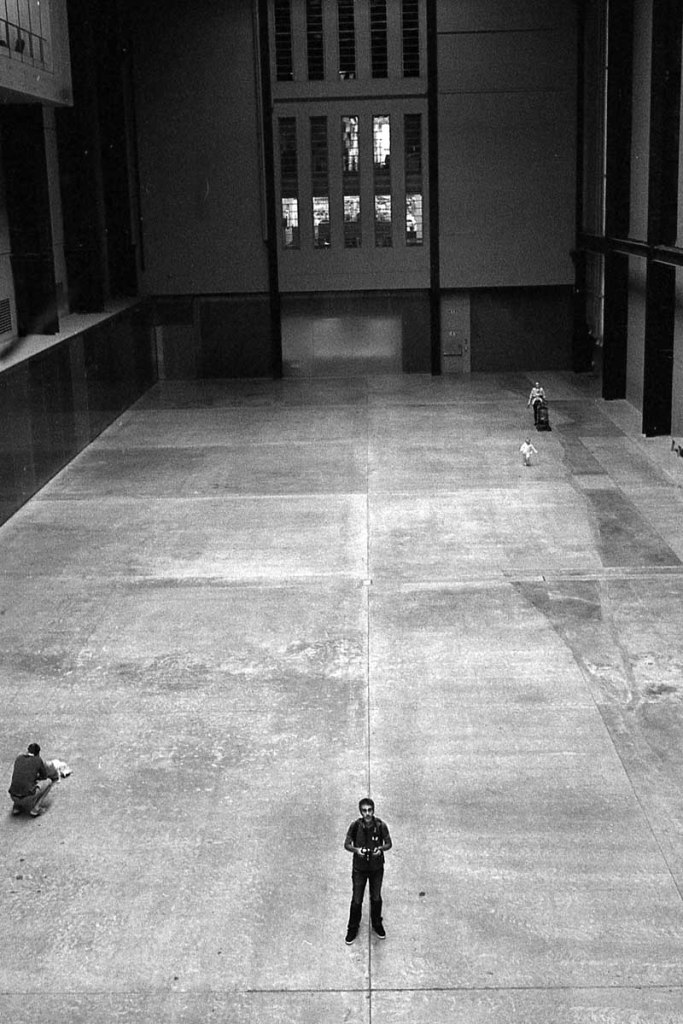 Once inside, the “Turbine Hall” still looks the same. Perhaps I should explain for those who don’t know, Tate Modern, a modern art gallery on the south bank of the Thames in London, was once a power station. Derelict for a while, then converted to a gallery and opened to the public in May 2000. The Turbine Hall below, where the turbines once stood, now house occasional large installations, I especially remember a 150 meter long red trumpet by Anish Kapoor. I also shot an entire roll of Kodachrome on Olafur Eliasson’s “Weather Project” – and the people reacting to it!