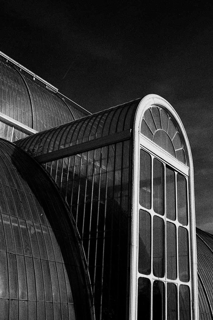 The sun was shining on the back of the Palm House, so I walked around the other side. I decided that I’d put the orange filter on to darken the sky and make the light metal pattern stand out even more – it worked!
