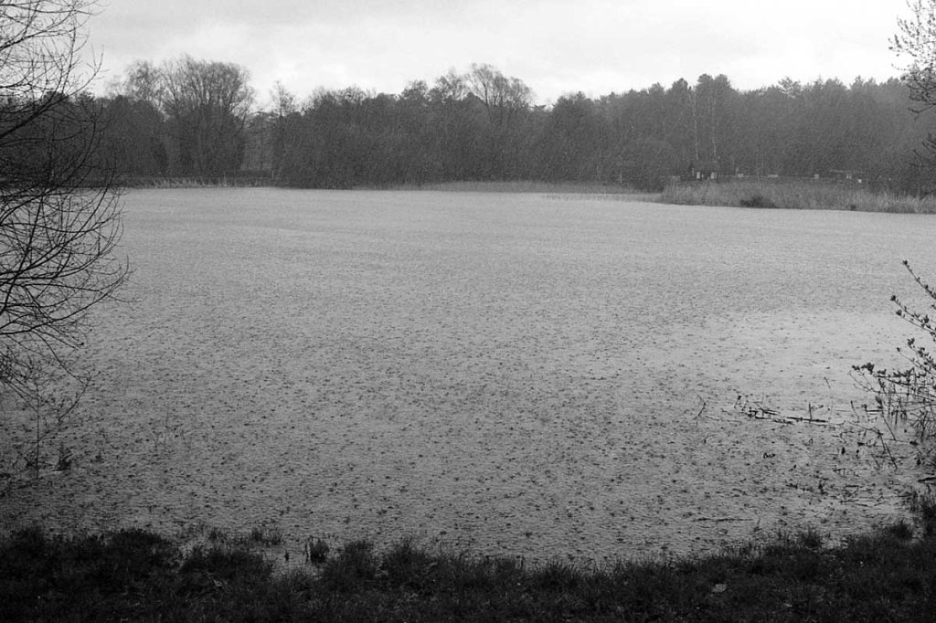 As a footnote I decided to try this, at the West Moors Country Park, a walk I take regularly, so that if it all went wrong, I wouldn’t loose anything thing that I couldn’t repeat. About 20 mins in it started to rain, so the film speed was useful. Then the rain got heavier. The river and then the lake had burst it’s banks and covered the path. I was past the point of no return and the water was over my shoes more than once! Above the river is to the right, on the left should be the path! Below look at that rain! Below again, there’s a path there somewhere!!
