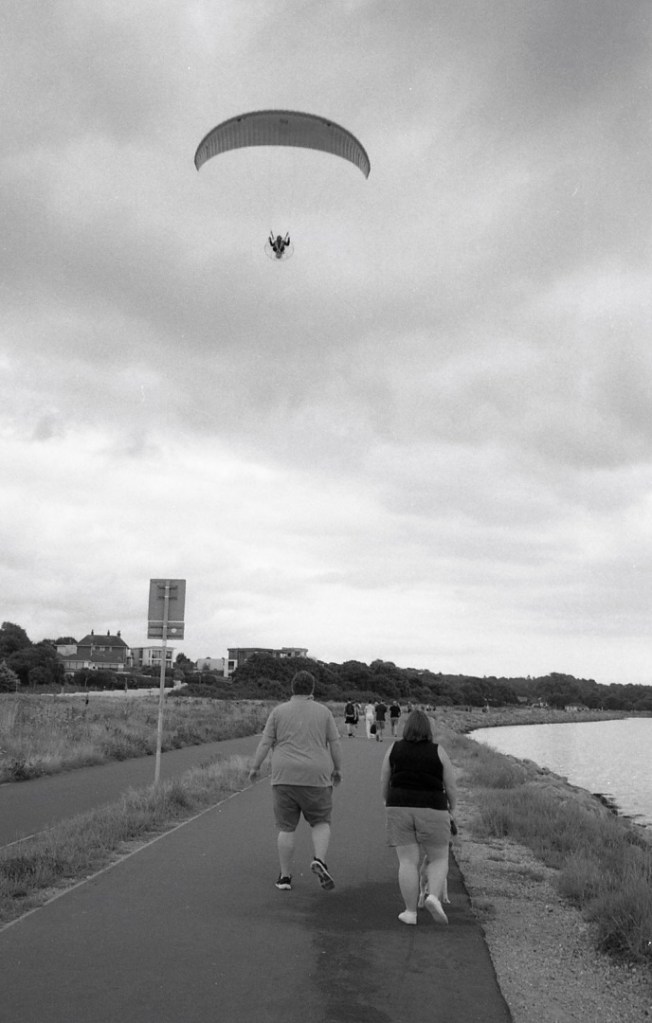 Adjacent to the clubhouse is a railway bridge with an underpass that takes walkers out onto a harbourside area known as Baiter. As I was walking along the path towards the quayside, a paraglider was flying about enjoying the view. The images above were made with a 35mm lens – he was low!