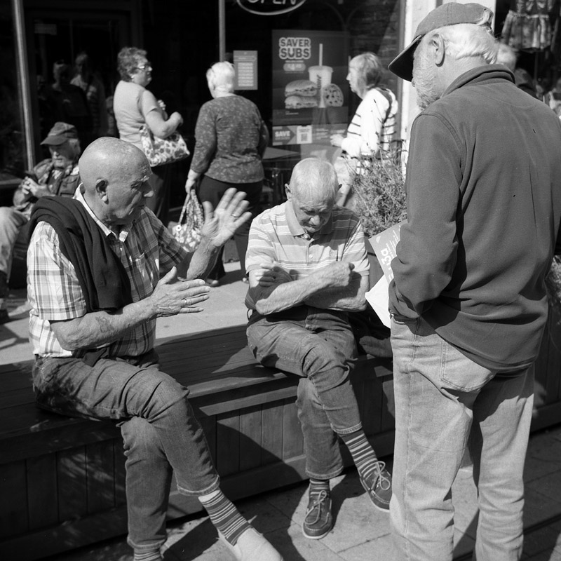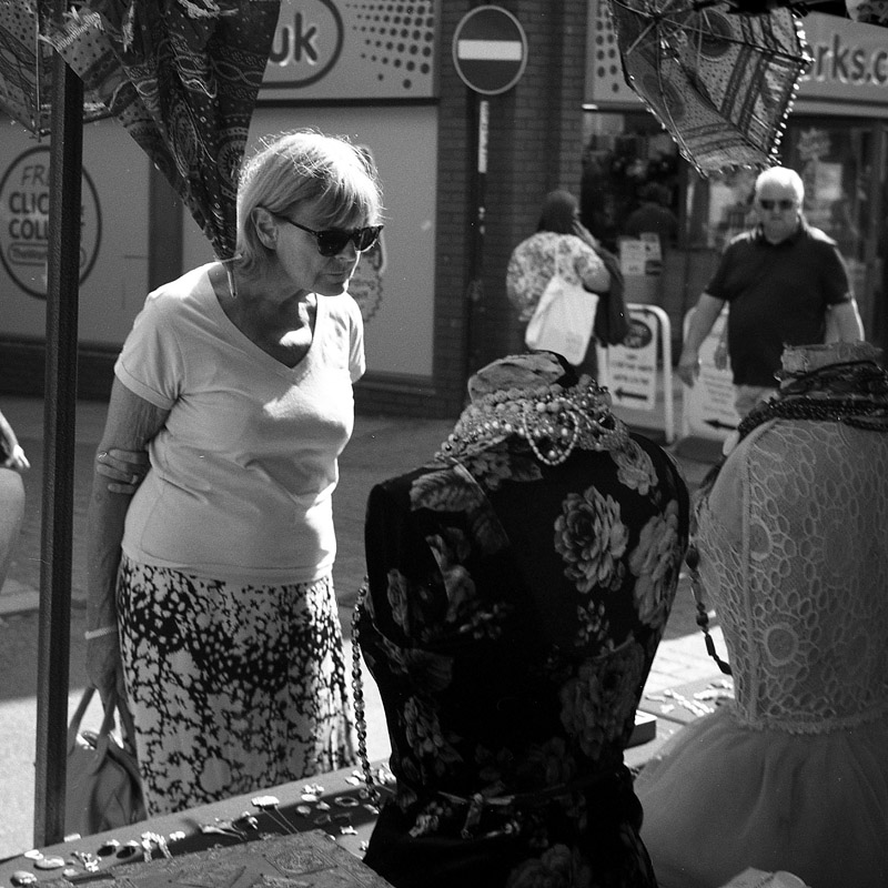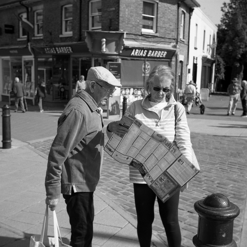 I think next time I’ll shoot HP5, that will give me both a faster shutter speed and a greater depth of focus, both of which are useful in the street. Likewise a 1950’s folding 6×6 isn’t the obvious choice either, but it’s less about the camera.