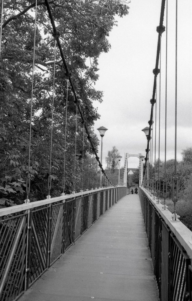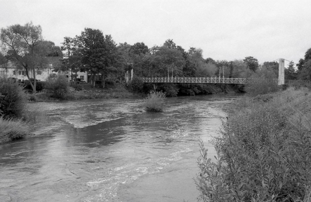 Just past this tower, a lock between the river and the canal is my point to to the far side of the canal. A short walk on, I cross the Trews Weir Suspension Bridge, it’s a foot bridge, complete with a slight wobble.