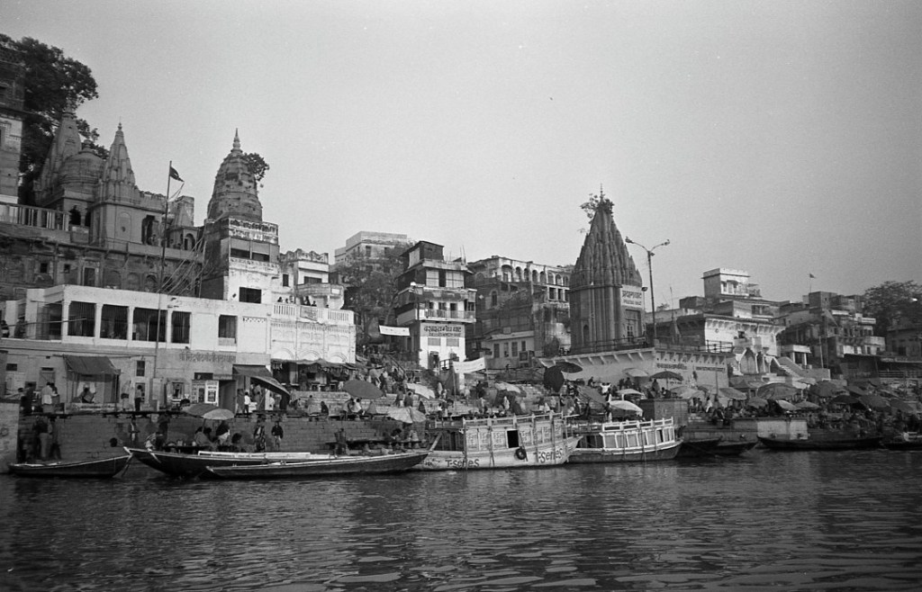 Of course one morning I awoke uncharacteristically early, set of in a mad taxi, and found myself on the river bank. I mostly used Fuji Sensia 100, but made a few images on FP4. I experienced many things while there, not least an open air cremation, a boat trip in a very flat wooden boat, a massage on one arm (!) and sacred cows. It was one of those mornings that happen sometimes while travelling, just magical. It’s clearly still in my memory all these years later. Another similar morning for me was watching the sunrise above Niagara Falls, but that’s another story.