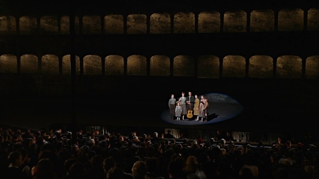 Below is an image of the inside showing those arcades and the Von Trap family singers on stage, just before they escape the clutches of the Nazi’s…..