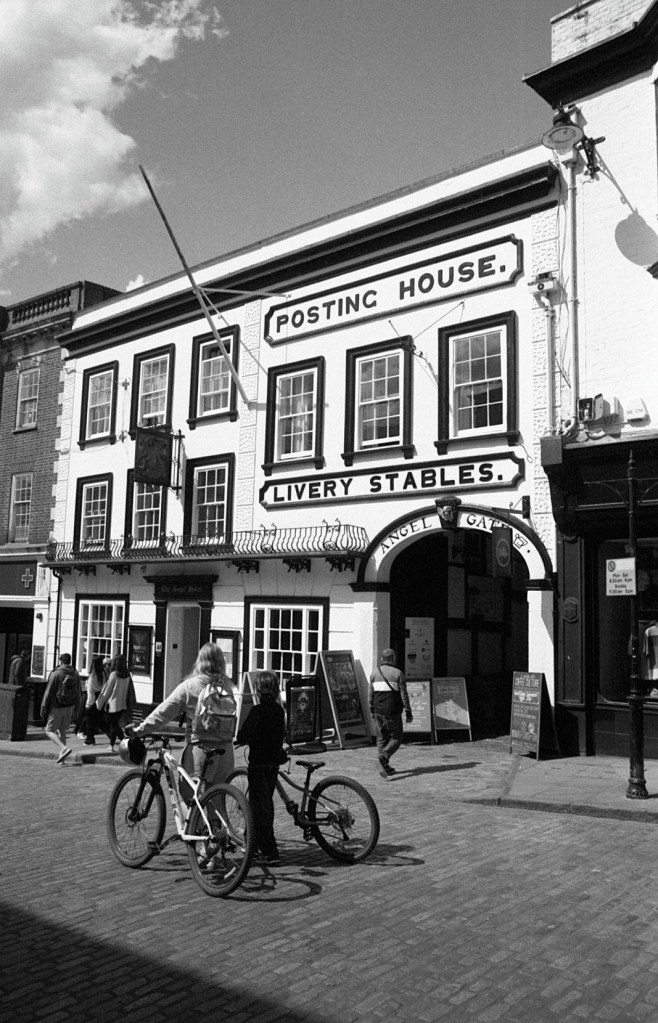 Further up again the posting house, a former coaching house with bits dating from the 1300’s – note the wider entrance to accommodate two horses and a carriage! It’s now the The Angel Posting House & Livery Hotel.