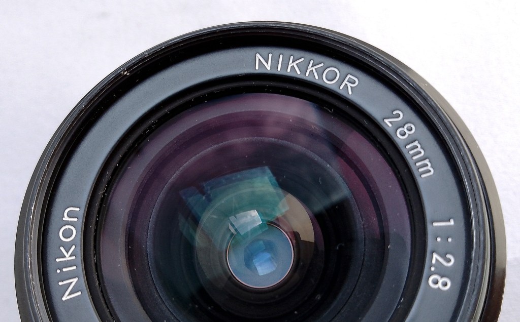 The Nikon range of F lenses came about with the release of the original Nikon F in 1959. My F 28mm is the AI-S version first released in August 1981. I can work this out for two reasons. 1) The smallest aperture is marked orange on both the actual aperture scale and “Nikon’s Aperture Direct Readout” (ADR) system, which is actually just a small window! (you can see in the photo below). 2) It focus’s down to .2 of a meter. I didn’t realise that it was the close, but that is misleading as that scale is (like most lenses) measured to the focal plane not the front element of the lens – that’s right down to about 9cm! Frankly it’s almost like a macro lens!