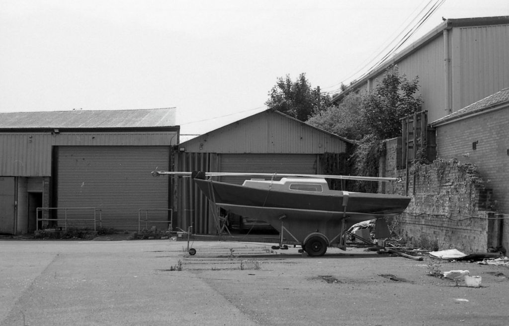 Just outside the station there was once a builders merchant, now all boarded up and gone. A yacht stands alone in the yard.