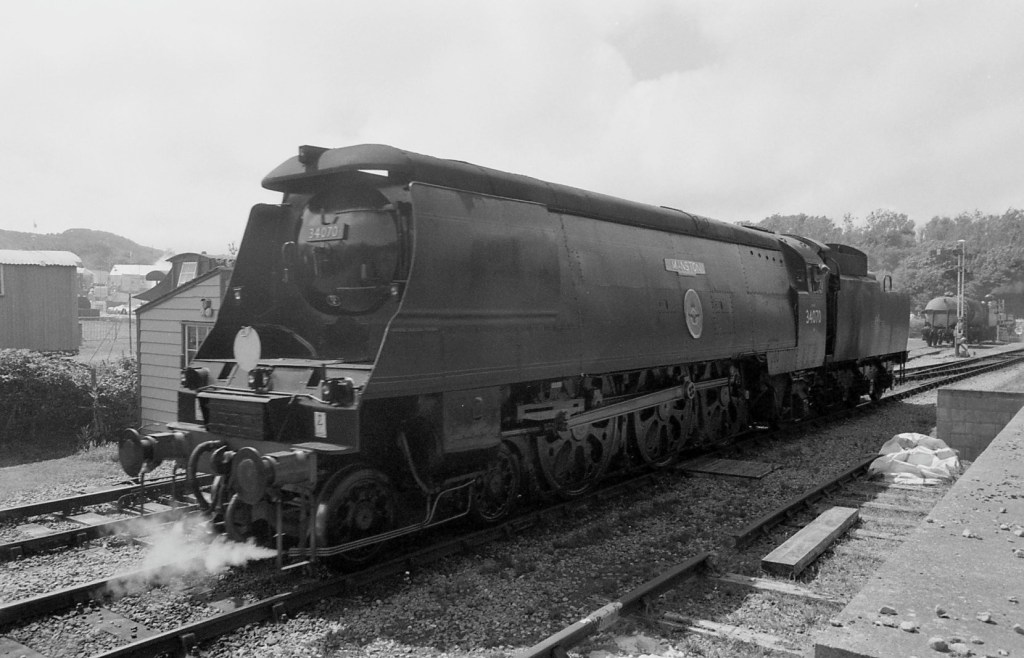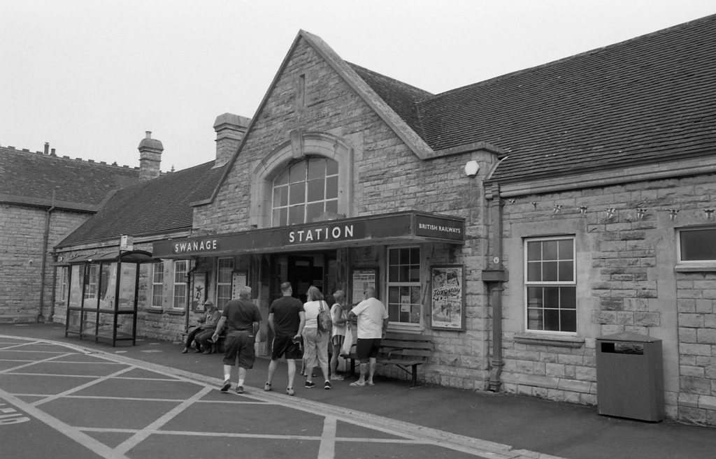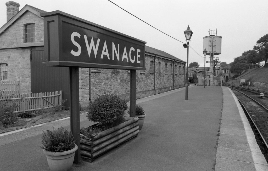 I got back to Swanage railway station in time to catch the 1:30pm diesel train to the other end of the line. It’s a preserved railway that is 9.5 miles long, and is about a half hour ride. In a strange turn of events the younger diesel engine had broken down, so the much older (1947) steam train had to come to the rescue and take up the slack! To cut a long story short, the 1:30pm diesel service turned into the 2:15pm steam. Not all bad, I got to travel steam again! The station (above) is the original.
