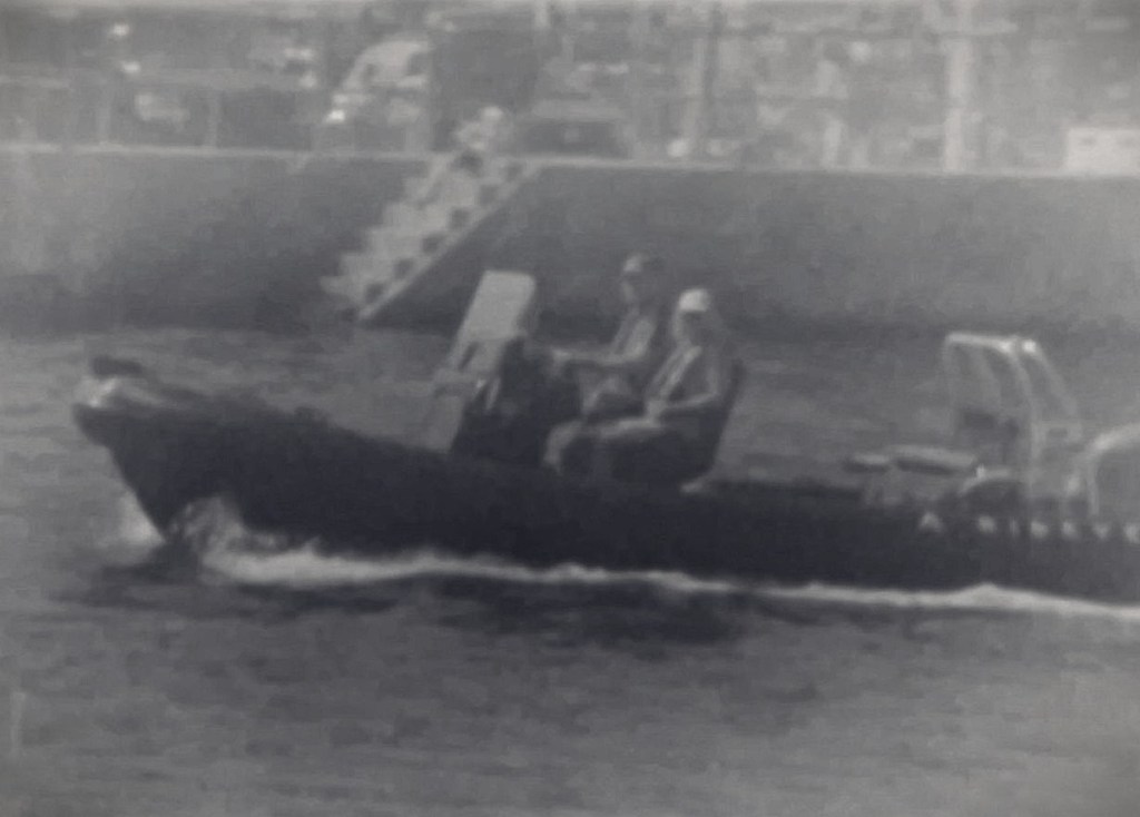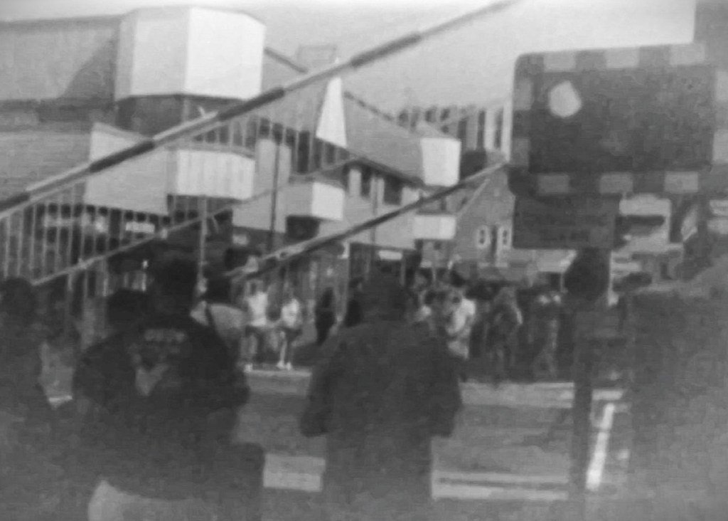 The splicer I haven’t used in years, but still remembered how to use it. Likewise the projector, in fact it was good to get it out again and run it for a while so that doesn’t cease up. All worked fine. I tried to film the small projected image with the phone – that was a waste of time. In the end I used my Canon Powershot, all set up in a quick haphazard way. I did get a moving picture. To be honest I couldn’t be bothered to invert the movie, (of course it was developed as a b/w negative and not the colour positive it’s supposed to be!) so I grabbed a couple of frames, inverted those and did a quick photoshop job to give an idea of what I got.
