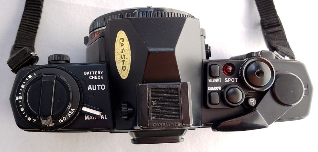 Compared to the OM2n the main obvious difference is the exposure system. It’s the first camera that I have owned that has arrived with a separate manual for the exposure system! It has a muti-spot meter claimed to be (2% of view; 3.3˚ with 50 mm lens) . It’s possible to take up to 8 spot readings and let the camera average them out! In practice, with modern film latitude, over a scene, where that gets you compared to a wider average, I’m not sure or convinced. However, perhaps more useful is that it has a “Shadow” and “Highlight” button for dialling in those spot readings. In other words if one has a dark subject, the exposure will make an allowance for that rather than trying to make it 17% grey (Zone 5). I assume it doesn’t “open up” the aperture by a stop or so, to needlessly lighten it. Likewise the “highlight” button, doesn’t “close down” to darken the scene. There is also an AE lock, One point spot, and memory lock. The example given for that is a multi shot panoramic exposed evenly across all frames.