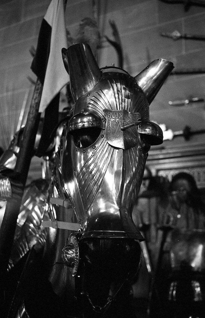 The main hall above is dominated by two horses clad in armour. Most of what is shown is replica, but there are a few actual historic pieces here and there. I was photographing with my Canon EOS 30 and the 40mm STM, on Kodak Tri-X, available light. I was pleased with what I got!