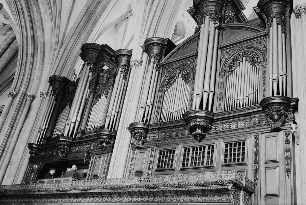 Above (left) looking down the Nave showing the screen that was added in the 19th century, and (right) the altar. You may just notice in the left image that, I guess due to the fragmentary building of what we see today, there is a slight curve! Just the other side of that screen is the choir, where on the left hand side is the bulk of the organ. Originally built and installed in 1685, but just like the rest of the cathedral has been changed, added to, restored. The latest restoration only just completed in 2025, changed the operation from Tubular Pneumatic to Electro-Pneumatic. Lucky for me, just as I walked under the screen and into the choir, it blasted out a few test notes, the the organist proceeded to play Bach’s Toccata and Fugue in D minor. As a side note – If you are interested in that sort of music (like me) have a look at this amazing you tube video! The organist appears to have three hands literally!! It’s playing as I write this!!
