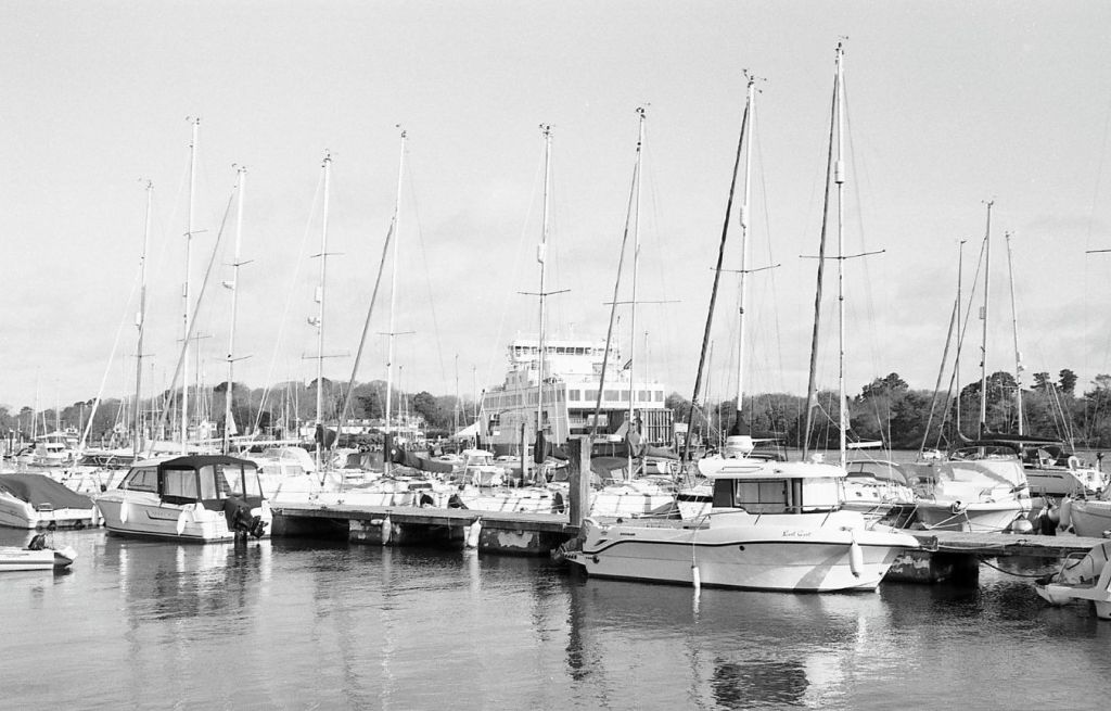 Lymington is a smallish town on the south-coast of the UK, about half way along, close to Southampton. It’s also one of the departure points for a car ferry to the Isle of Wight, and the closest to where I live. I’ve recently spent a week on the Island, so prepare for a series of posts! I took with me a pair of Canon EOS 30’s and a couple of lenses. Most of the time I used one body with the 40mm STM. The one I think I’ve worn out! Above is the “bandstand” at Lymington. Unusually, despite the fact it’s a port there isn’t really any sea front as such, more a short piece of riverside. From here one can watch the ferry come and go. The photo below was taken from the area to the right of the photo above. The ferry is in the background.
