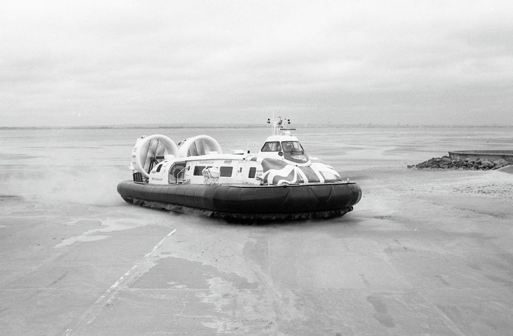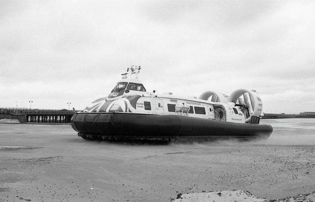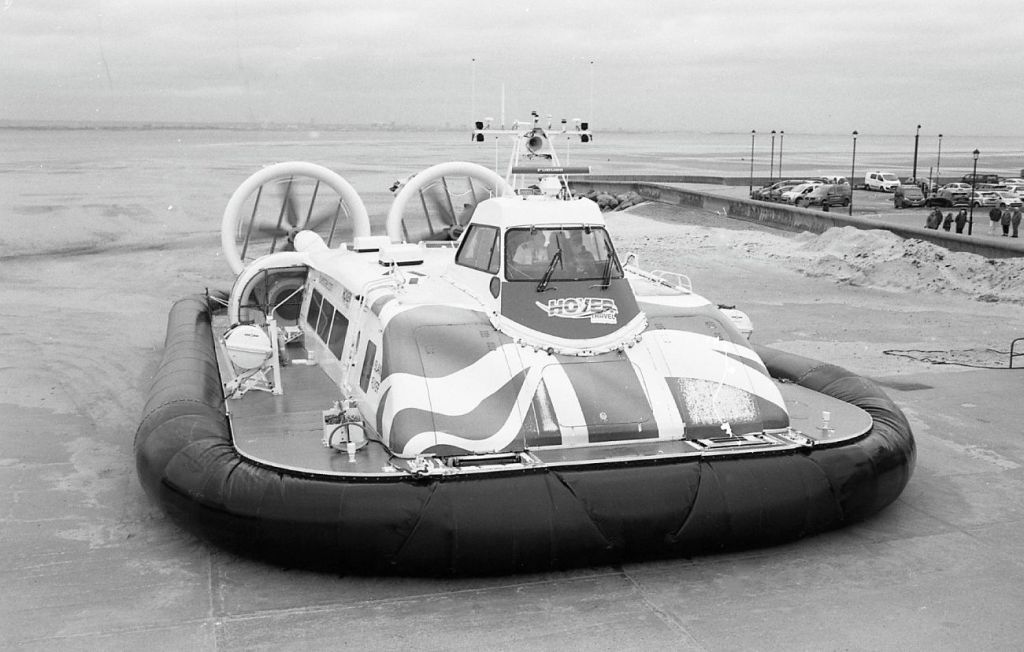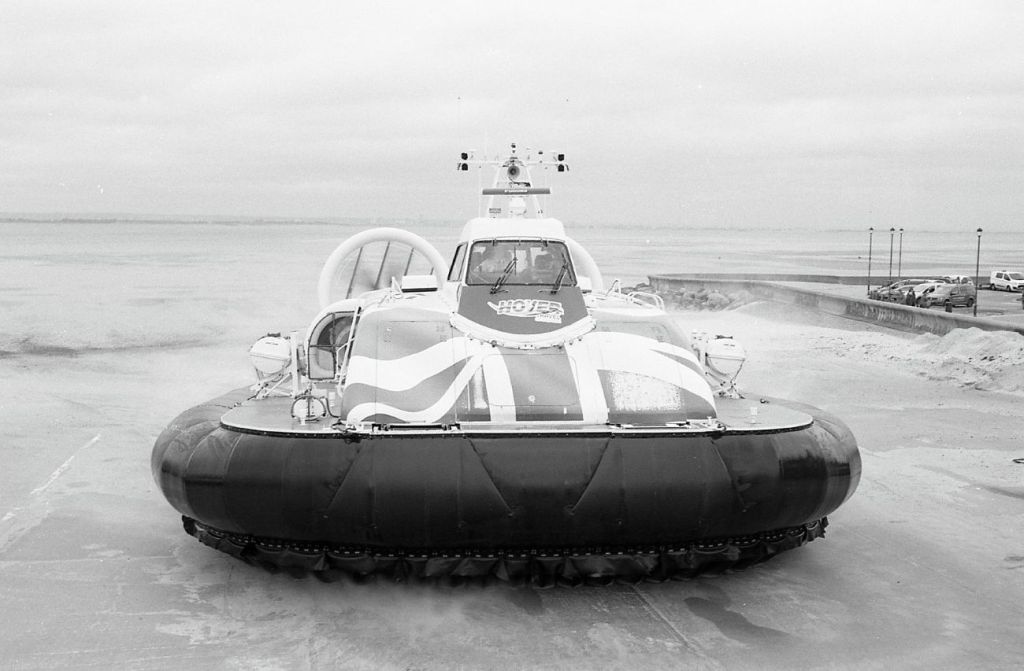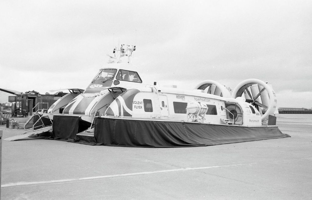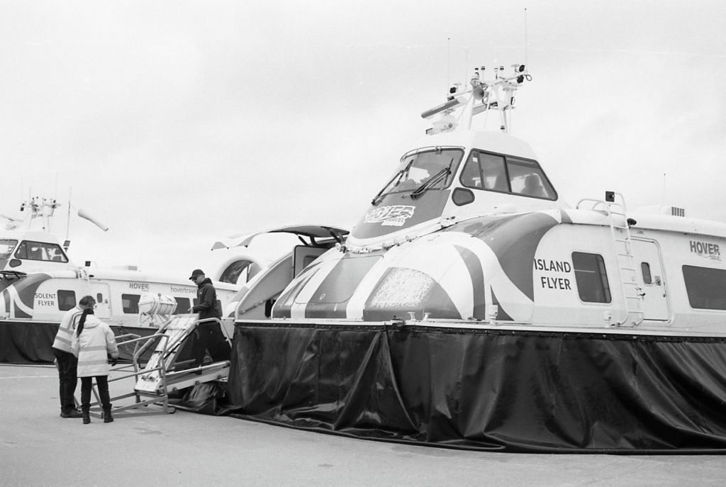 This post features Hovertravel 12000TD’s – built by Griffon Hoverwork Ltd (now Griffon Marine) just across the water in Southampton and Portsmouth. The ride between Southsea and Ryde is the worlds longest running passenger service, and as far as I know, the last one left in Britain. I’ve both photographed and filmed them before, this time on black and white film. As you may have guessed, there could well be a future post of “Hovercrafts in Colour”!! Both the “Solent Flyer” and the “Island Flyer” make up the current fleet. Each holds about 78 passengers and the journey time is around 10 minutes.